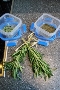 Fertig getrocknete Kräuter und zum Trocknen
