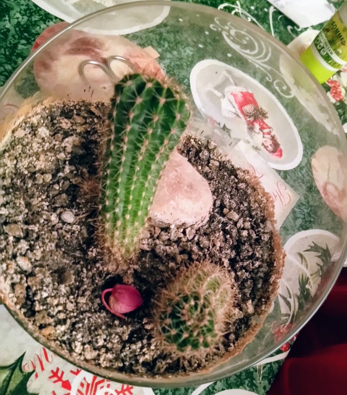 In diesem Bild erkennt man schön, wie sich die Kakteen an ihre Umgebung angepasst haben. Da die Schale eine Art Kakteen-Landschaft simuliert. Man muss dazu sagen, dass die Kakteen als Jungpflanzen hineingepflanzt wurde.