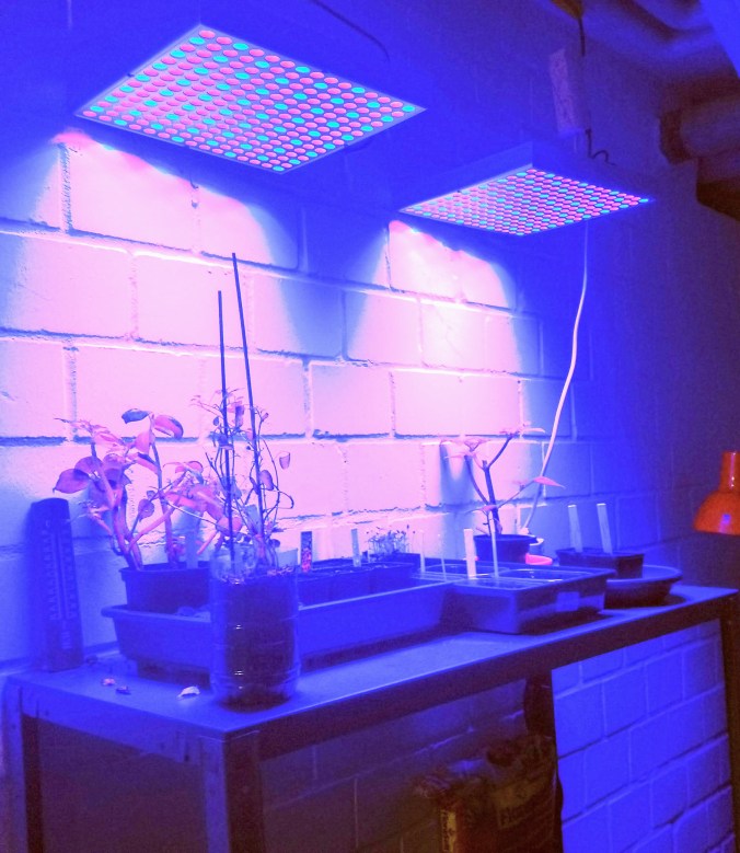 In diesen beiden Fotos seht ihr meine speziellen Pflanzenlampen, die mein Mann über ein kleines Regel installiert hat. Die Beleuchtung funktioniert über eine Zeitschaltuhr, damit die Pflanzen ausreichend Licht bekommen.