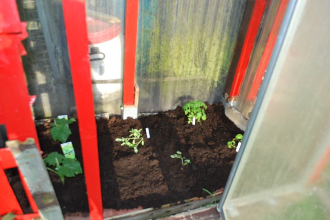 Als Nächstes stand das Tomatengewächshaus auf dem Plan. Nachdem es mein Papa repariert und mit frischer Erde aufgefüllt ist, war es bereit für die Gurken und Tomaten.