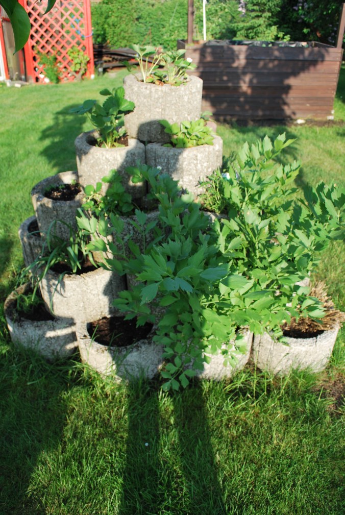 In meinem letzten Blog-Eintrag „Ein perfekter Start in die Gartensaison“ habe ich berichtet, dass der Kräuterturm ziemlich unter den harten Minusgraden gelitten hat. Also musste da ein kleiner Neustart gemacht werden. Ich habe mir einige Gedanken gemacht und habe eine schöne Kombination gefunden. Im oberen Bereich des Kräuterturms habe ich mich entschieden, Erdbeeren zu pflanzen und darunter die verschiedenen Kräuter.
