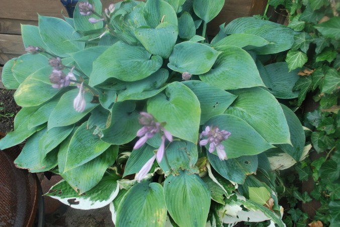 In diesem Bild sieht ihr eine Funkie, die ich als Soltiärpflanze seit Jahren in einem Mauererkübel wachsen lasse.