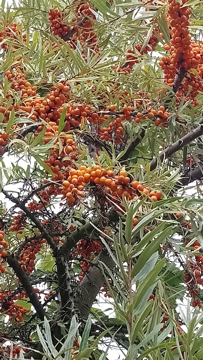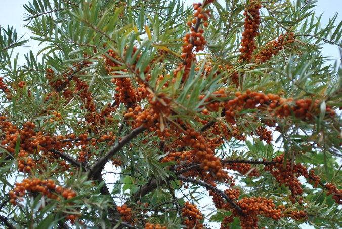 Auf diesem Bild kann man ungefähr erahnen, wie groß so eine Sanddorn- Pflanze werden kann. Bei dem nächsten Bild wird die Größe des Sanddornes noch mal sehr deutlich.
