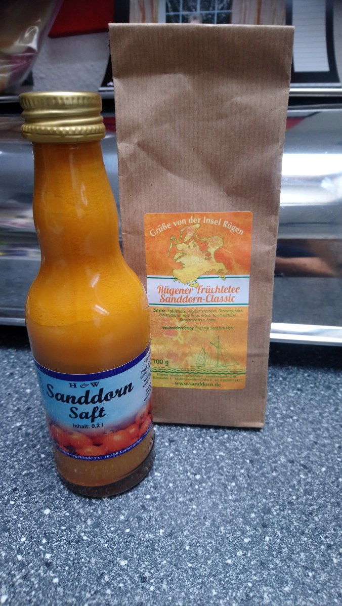 Aus Sanddorn wird eine Menge Produkte produziert, zum Beispiel in Form von Saft oder Tee. Nicht nur Nahrungsmittel werden aus dem Sanddorn erzeugt, sondern auch in der Medizin, sowie in der Kosmetik findet er seine Bestimmung. Als Tee oder Saft bevorzuge ich ihn besonders. Er ist lecker, süß mit einer säuerlichen Note. So kann auf einfache Art das Vitamin-C aufgenommen werden.