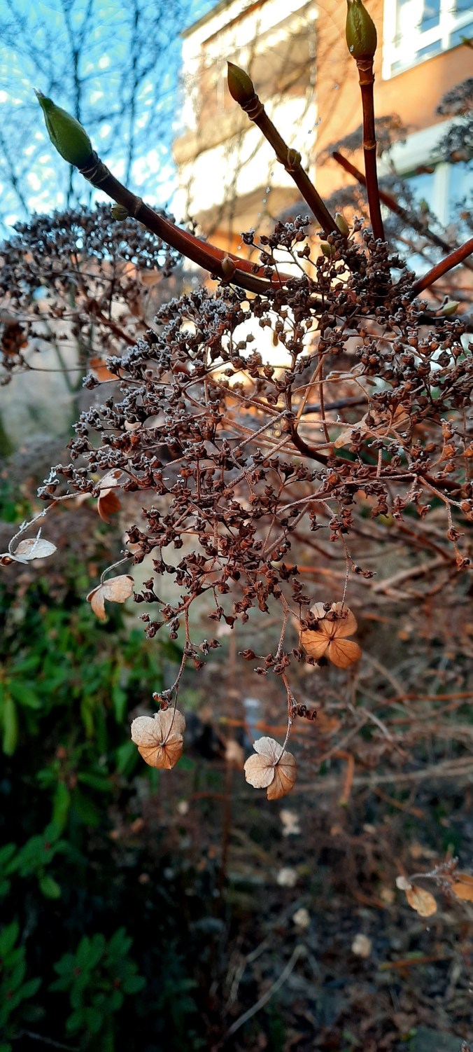 Die Hortensien ist ein wunderschönes Gehölze, welche im Halbschatten optisch sehr ansprechend aussieht. Neben der bekannten Bauernhortensie gibt es die Rispenhortensie, Ballenhortensie und die Kletterhortensie. In unserem Schrebergarten haben wir die bekannte Bauernhortensie, sowie eine Rispenhortensie. Beide Gattung finde ich sehr schön, besonders im Sonnenlicht des Herbstes. Die Kletterhortensie hab ich erst vor kurzem entdeckt, sie dient als Abgrenzung zum Nachbarn. Dabei ist sie attraktiv und bildet ein Grundgerüst für das gesamt Bild der Terrasse.