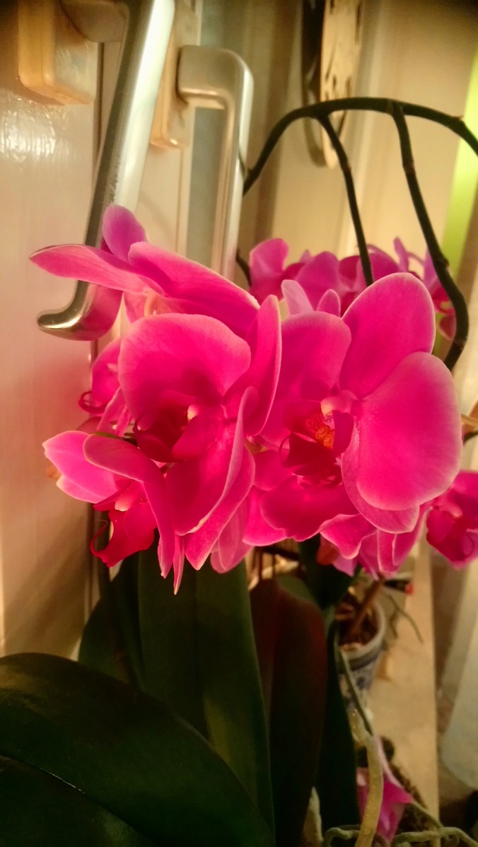Schon meine Oma war von dieser Pflanzenschönheit verzaubert und hat mir diese Leidenschaft weiter vererbt. Bei Orchideen ist mal nicht das Blattwerk im Mittelpunkt, sondern einfach nur die Blüte und das finde ich besonders atemberaubend. Klar, sind die Blätter auch sehr ansehnlich, aber sie kommen erst nach Blüte zur Geltung. Dadurch könnte man meinen, sie sind außergewöhnliche, grüne Zimmerpflanzen. Denn es dauert eine gewisse Zeit, bis sich ein neuer, langer Blütenstiel entwickelt. Neben den länglich, großen Blättern, sind auch die Luftwurzeln einzigartig anzusehen. Sie sind leicht grünlich mit einem grauen Überzug und sie hängen einfach in der Luft. Dadurch wird die Orchidee versorgt. Ein unglaubliches Zusammenspiel zwischen Blüte, Blatt und Wurzeln wird uns Pflanzenliebhabern gezeigt. Dadurch wird die Orchidee für mich zu einer Art Zauberpflanze, welches man schön auf den drei folgenden Bildern erkennt.