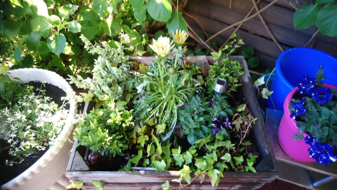Ich liebe diese bepflanzte Obstkiste sehr, denn sie lässt mir absolute Pflanzenfreiheit. Denn ihren Standort kann ich nach den Ansprüchen der Pflanzen variieren. Zusätzlich hat man ein kleines Blumenbeet für kleinen Raum geschaffen. Aber nicht nur Blumen lassen sich in einer Kiste kultivieren, auch Gemüse oder Kräuter. Je nach seinem eigenen Geschmack.