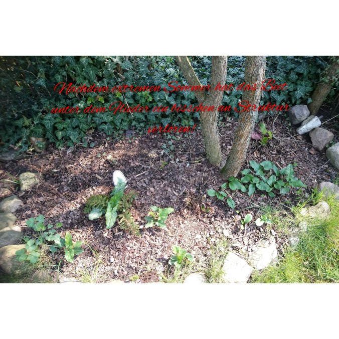 Aber nach einer Gartensaison haben wir irgendwie das Beet vergessen. Die schattenliebenden Stauden sind wieder gekommen in ihrer vollen Pracht. Warum wir es nicht mehr beachtet haben, dass wissen wir selber nicht. Ich vermute, dass andere Projekte letztes Jahr wichtiger waren. Daher bekam das Beet Rindenmulch und das war es dann auch schon wieder. Hinzu kam das wir es vergessen hatten zu bewässern. Durch den extrem Sommer im letzten Jahr irgendwie kein Wunder. Man wusste einfach nicht mehr, wie man alles am besten bewässert. Zu dem muss ich sagen, unsere Pumpe war nicht im Besten Zustand.