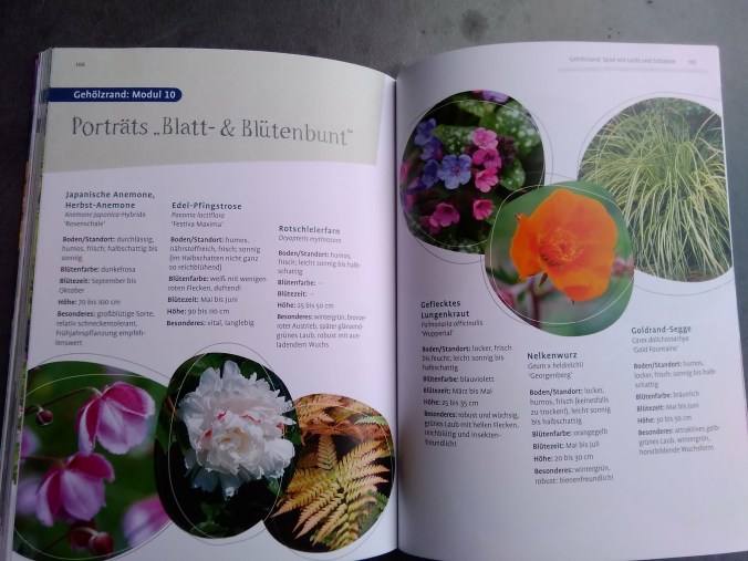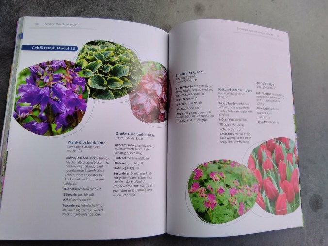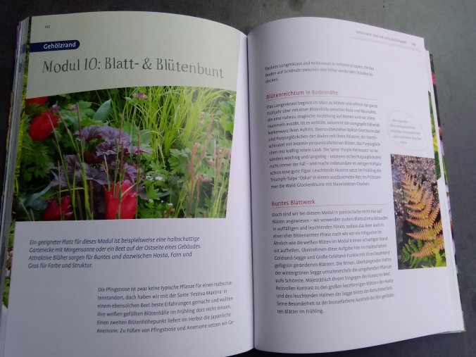 Die Module für jeden einzelnen Lebensbereich sind sehr gut aufgebaut und machen fachmännischen Eindruck. Die vorliegenden Pflanzpläne sind in einer einfachen Ausführung abgedruckt. Alle vorkommenden Pflanzen sind in den entsprechenden Farben und Nummern eingetragen. Dadurch kann der Leser sie auf einfache und schnelle Art finden. Im Anschluss an den Pflanzplan findet der Leser die dazugehörigen Pflanzenporträts mit allen wichtigen Informationen. Ein guter Zusammenhang ist da den Autoren gelungen. Auch die Bilder zu den Modulen sind passend ausgewählt. Der Leser bekommt so eine Ahnung, wie die entsprechenden Stauden aussehen.