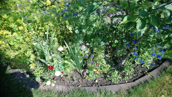 In diesem Jahr habe ich eine kleine Ecke an der Terrasse vorbereitet, um eine bunte Mischung aus zu säen. Dafür müsste ich den Boden mit entsprechender Blumenerde verbessern. Danach einfach nur die Saatmischung auf den vorbereiteten Boden ausgebracht, wässern und abwarten.