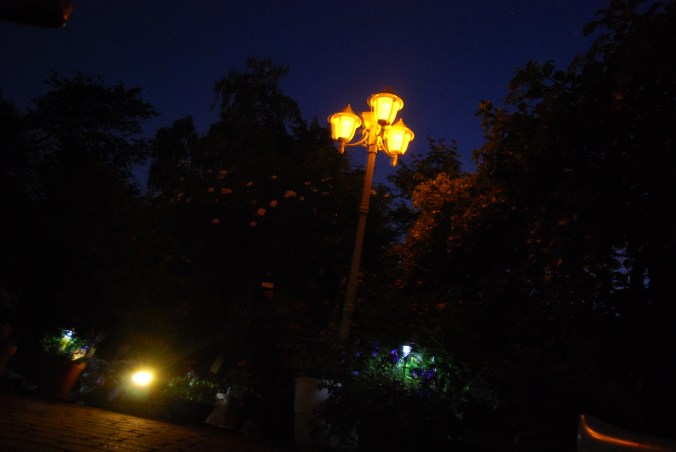 Besonders das Genießen in den Abendstunden finde ich am Schönsten! Neben der Ruhe ist es auch die gemeinsame Zeit mit meiner kleinen Familie, die das Genießen in den Abendstunden so besonders machen. Wenn es dunkel wird, gehen die unterschiedlichen Solarlampen an und erstrahlen die Kübel oder das angrenzende Beet. Dadurch erstrahlt alles nochmal in einem anderen Licht. Einige Ecken benötigen die ein oder andere Lichtquelle. Leider habe ich für diese Ecken noch keine passenden Lampen gefunden. Aber wer sucht der wird irgendwann auch fündig. Außerdem kann man mit Kerzenlicht oder Lichterketten auch einiges bewirken. Mit den Lichtern entsteht eine ganz andere Atmosphäre und man hat das Gefühl, als wenn man im Urlaub ist. Ein schönes Gefühl den Tag zu beenden. Ich hoffe, dass ich mit den nachfolgenden Bildern euch meine Terrassen- Romantik vermitteln kann. Es ist nicht immer leicht, die vielen Eindrücke in Bilder einzufangen, aber ich hoffe, dass es mir gut gelingt.