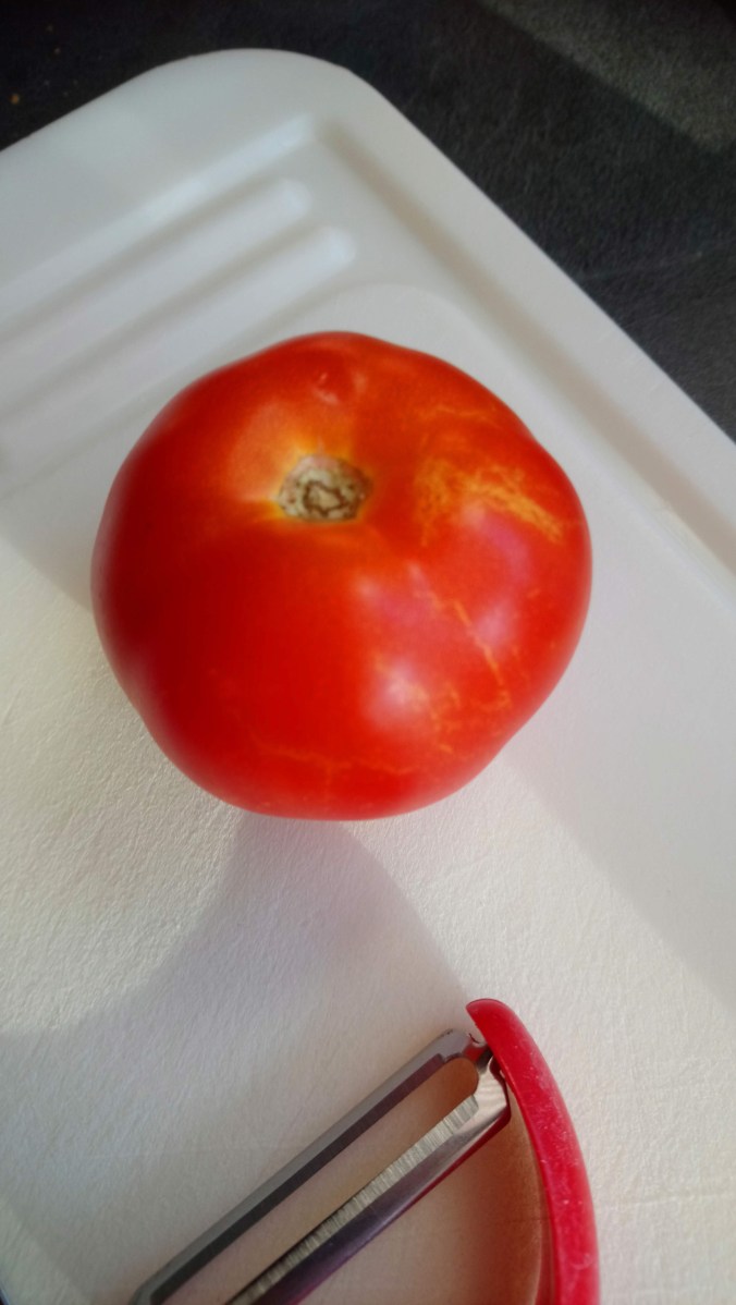 Die erste geerntete Tomate.