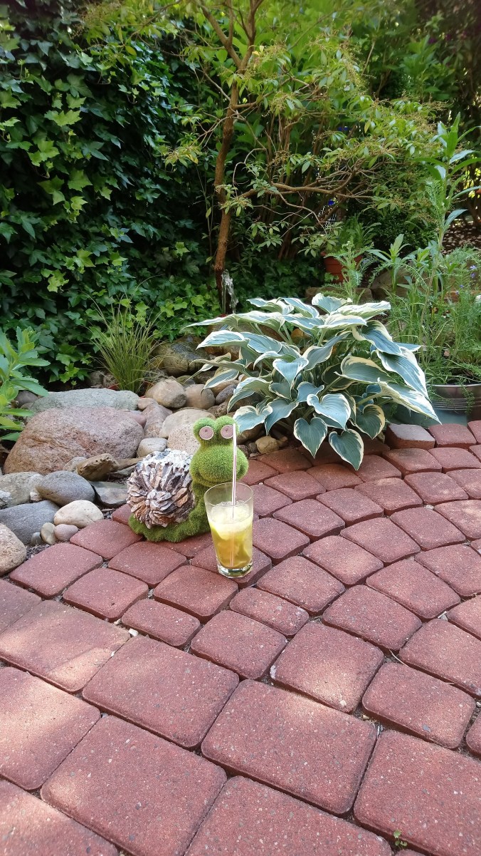 Jede freie Minute, wenn das Wetter sommerlich ist/ war, verbrachte ich auf der Terrasse oder habe in dem angrenzenden Beet meine Gartenarbeit ausgeführt. Aber alleine der Anblick über das gesamte Areal macht mich glücklich. Tagsüber erhellt die Sonne ab frühen Nachmittag (sehr warm) alles und am Abend, wenn die Sonne langsam unter geht, dann liegt die Romantik förmlich in der Luft. Diese herrlichen Gegensätze erleben wir in Mitte der Stadt. Kann man eigendlich nicht glauben, dass so eine ruhige Oase sich in der Stadt befindet. Während ich diesen Beitrag verfasse, sitze ich natürlich auf der Terrasse und genieße meinen Kaffee, die angenehme Ruhe und beobachte meinen Sohn bei seinen Aktivitäten. Das Genießen steht in Moment an erster Stelle, man hat ja immer so viele Termine. Daher ist die Terrasse meine persönliche Wohlfühloase, um den Stress ab zubauen.