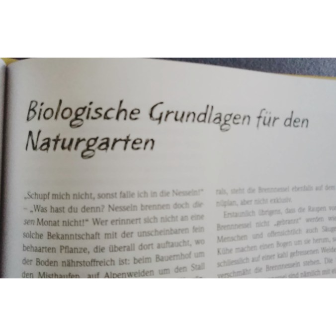 Im hinteren Teil des Buches befinden sich die Themen, was in einem naturnahen Garten gehört. Diese abschließenden Kapitel sind super informativ und daddurch lassen sich eigene Ideen entwickelt. In jedem Textabschnitt wird immer wieder auf einheimische Arten hingewiesen, wodurch einmal mehr deutlich wird, dass der zentrale Schwerpunkt auf naturnahe Gärten gelegt ist.