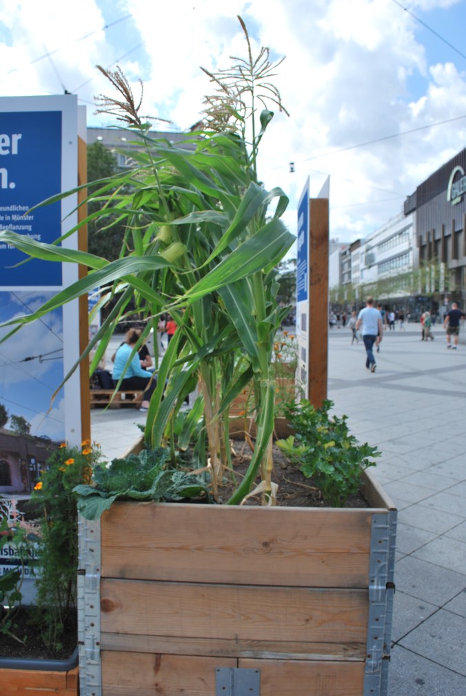 Ich interessiere mich seit kurzer Zeit mit der Thematik des Urban Gardening und musste mir diesen Stadtgarten in Mitte des Zentrums von Hannover angucken. Schon aus der Ferne fand ich die Aktion gelungen. So viele unterschiedliche Bepflanzung auf wenig Platz bildeten ein harmonisches Bild. Zwischen den toll, bepflanzten Hochbeete waren Informationstafeln aufgestellt, die über Vereine und Organisationen in Hannover informieren. Für den Besucher informativ gestaltet. Leider war dieser Stadtgarten nur für kurze Zeit vor Ort. Hoffentlich gibt es diesen kleinen Stadtgarten im nächsten Jahr wieder vor dem Hauptbahnhof, damit noch mehr Menschen es sich anschauen können und vielleicht ihr Interesse geweckt wird.