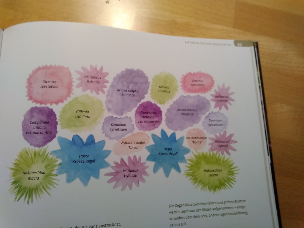 Die vorgeschlagenen Beetideen wurden umfassend beschrieben und grafisch dargestellt. So bekommt man gut eine Vorstellung, wie so ein Beet im Schatten aussehen könnte.