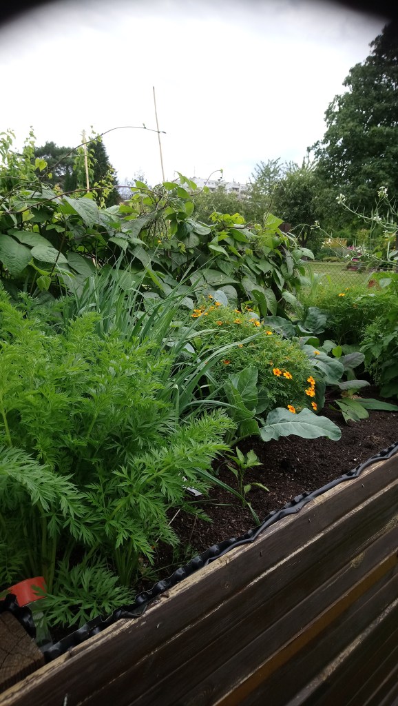 Ich liebe die Abwechslung im Hochbeeet. Es muss nicht immer das selbe Gemüse kultiviert werden. Die Kombination aus Gemüse und Blumen finde ich sehr spannend. Für solche Kombinationen lässen sich die Hochbeete sehr gut nutzen. In der letzten Gartensaison wurde sie im großen Hochbeet getestet und es war ein herrliches Bild: Bohnen, Tagetes, Kartoffel, Lauch nur um einige zu nennen.