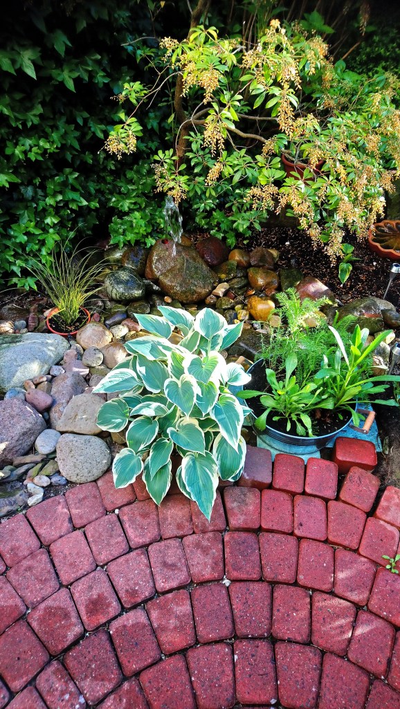 Von der ersten Minute an, war ich in die Terrasse verliebt und bin es immer noch. Mit Pflanzen zu verschönern oder ein wenig Gemüse zu kultivieren steht besonders im Mittelpunkt. Daneben gibt es ein kleines Wasserspiel, welches von unserer Vorgängerin installiert wurde. So eine Wasserquelle beruhigt. Leider war es bereits ein wenig marode und uns war von Anfang klar, dass bald eine neue beruhigende Wasserquelle her muss.
