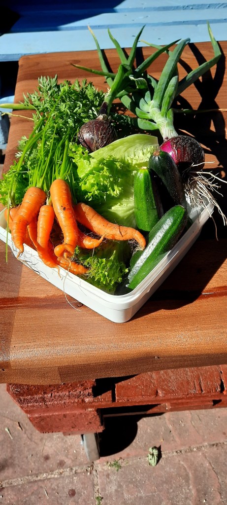 Endlich kann geerntet werden!! Viele Gemüse, Obst können im Juli geerntet und zu leckeren Essen verarbeitet werden.