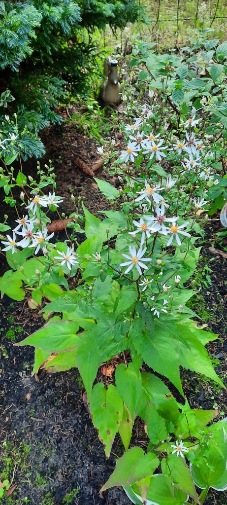 Als ich recherchiert habe, welche Stauden in einen Waldgarten gehören, bin ich auf die Waldaster aufmerksam geworden. Auf den ersten Blick eher unscheinbar und sehr zart in ihrer Erscheinung. Im letzten Jahr hab ich sie ins Beet, welches an der Terrasse angrenzt gepflanzt. Ich war neugierig, wie sie wächst und auf ihr komplettes Aussehen. Sie hat den starken Winter überlebt und mit zarten, weißen Blüten überrascht. Der Waldboden ist sandig und das scheint sie gerne zu mögen.