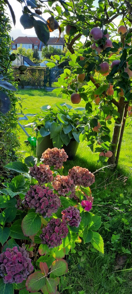 Im September war ich oft in unseren Schrebergarten. Ich liebe diese herbstlichen Momente im Schrebergarten. Die Herbstsonne strahlt alles so schön an und es entstehen magische Augenblicke (zum Beitrag: https://sandrasgartenwelt.blog/2022/09/20/der-maerchenhafte-herbstliche-garten/).