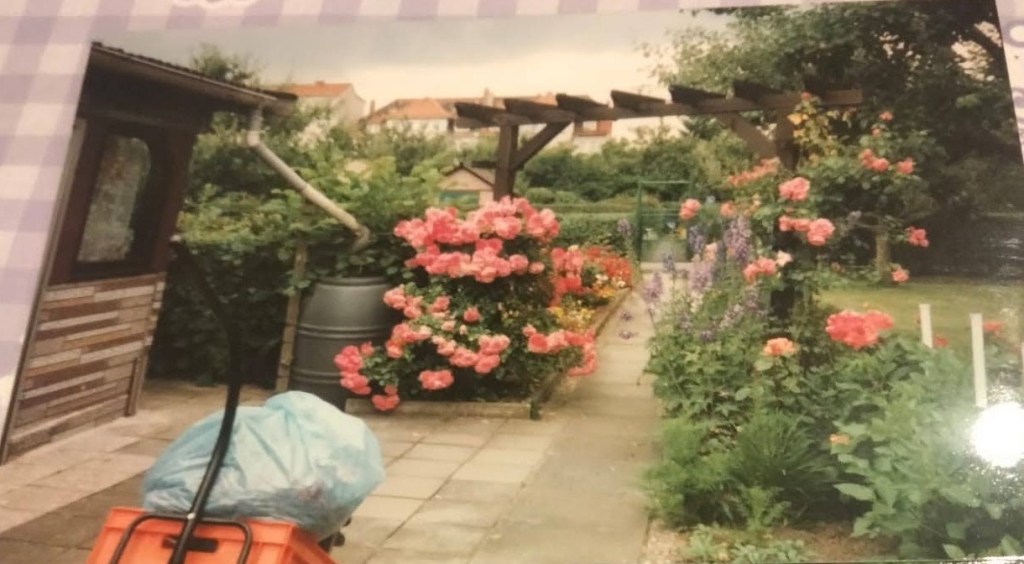So ein Holzrahmen hält durch die Witterungseinflüsse leider nicht immer lange. Irgendwann war der Holzrahmen so morsch, dass er aus Sicherheitsgründen entfernt werden musste. Zusammen mit meiner Oma haben wir überlegt, ob wir einen neuen Holzrahmen dorthin bauen oder nicht. Die Entscheidung ihn nicht mehr neu aufzubauen war aus heutiger Sicht, die Richtige gewesen. An erster Stelle war Oma wichtig, dass beide Kletterrosen einen neuen Standort im Garten bekommen. Sie sollten weiterhin einen fester Bestandteil im Garten sein.