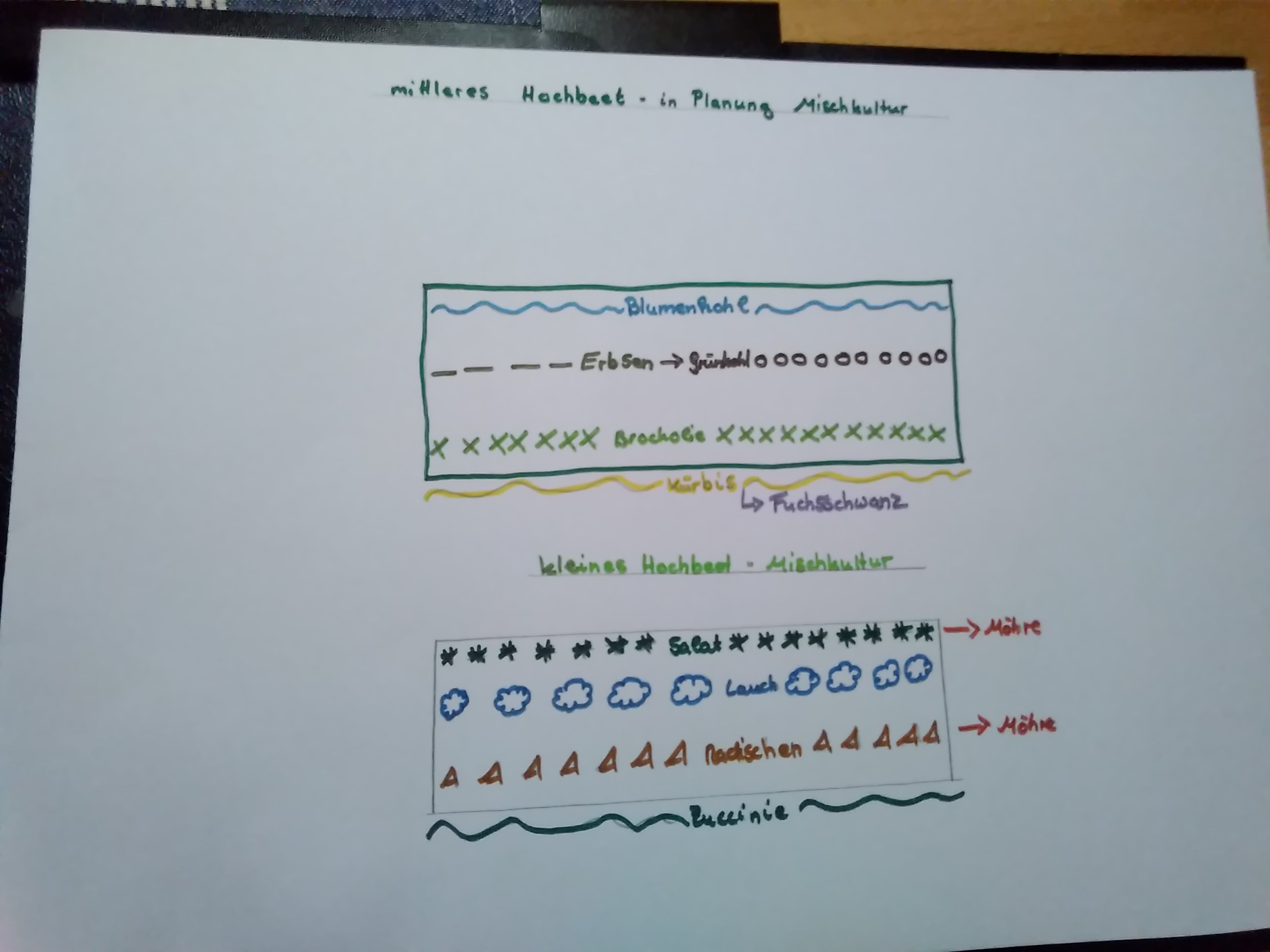 Für die nächste Gartensaison möchten wir die Mischkultur anwenden. In dem Buch von Schwester Christa Weinrich OSB “ Mischkultur im Hobbygarten“ (unbezahlte Werbung Ulmer Verlag, eine persönliche Buchrezension) wird gut erklärt, wie die Mischkultur anzuwenden ist und daraus habe ich einen Anbau-Plan für das kommende Jahr entwickelt.