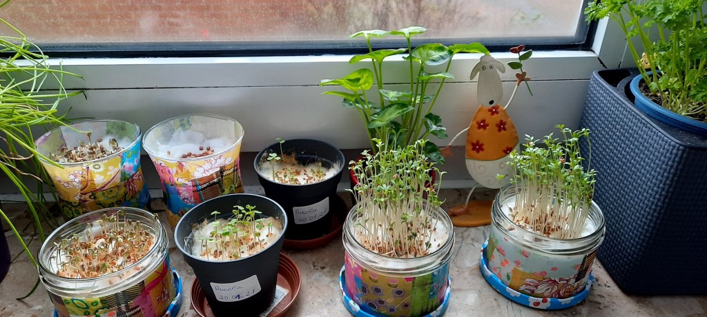 Zusammen mit meinem Sohn habe ich begonnen, Sprossen selbst zu ziehen und zu ernten. Es ist einfach und gesund. Salate, Brötchen oder Burger wurden so lecker aufgepeppt. Besonders lecker finde ich die Sprossen vom Radies und Rucola. Über das ganze Jahr können Sprossen selbst gezogen werden, egal wie die Lichtverhältnisse am Tag sind.