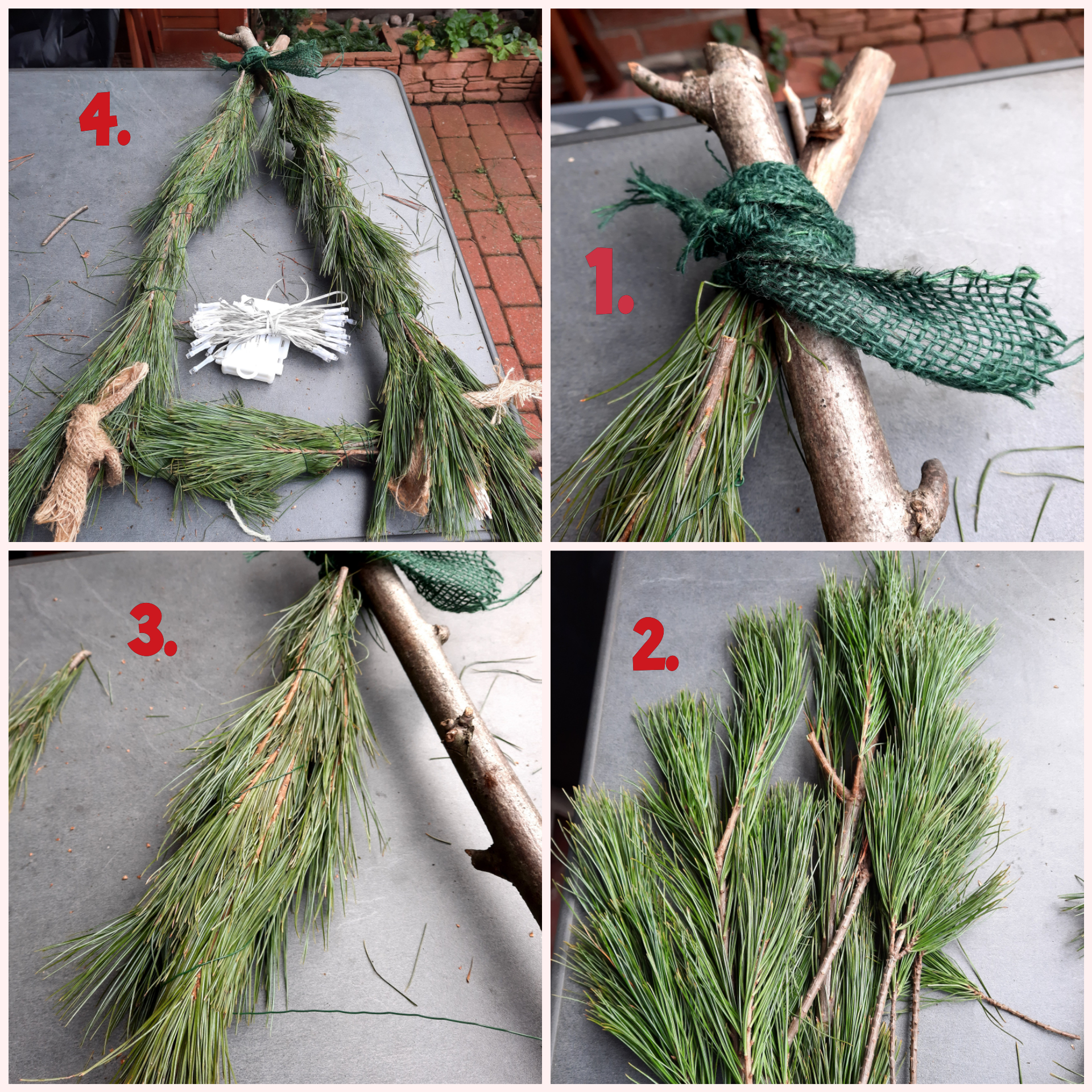 Jetzt wird die Schnur auf die gewünschte Länge geschnitten. Auf der Innenseite des Herbstblattes wird Kleber verteilt. In der Mitte des Herbstblattes wird die Schnur gelegt und anschließend das zweite Herbstblatt der selben Blattform drauf gedrückt.