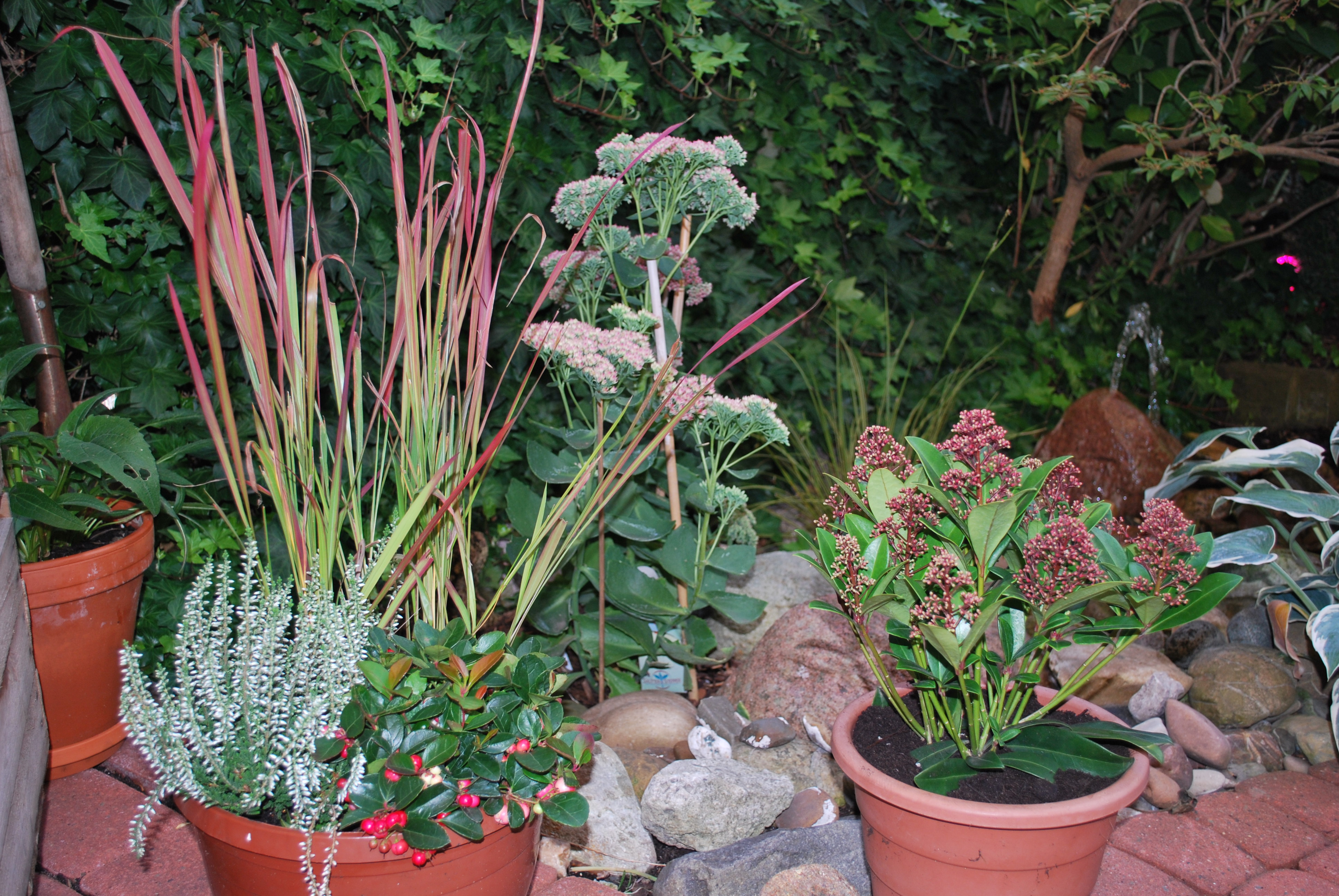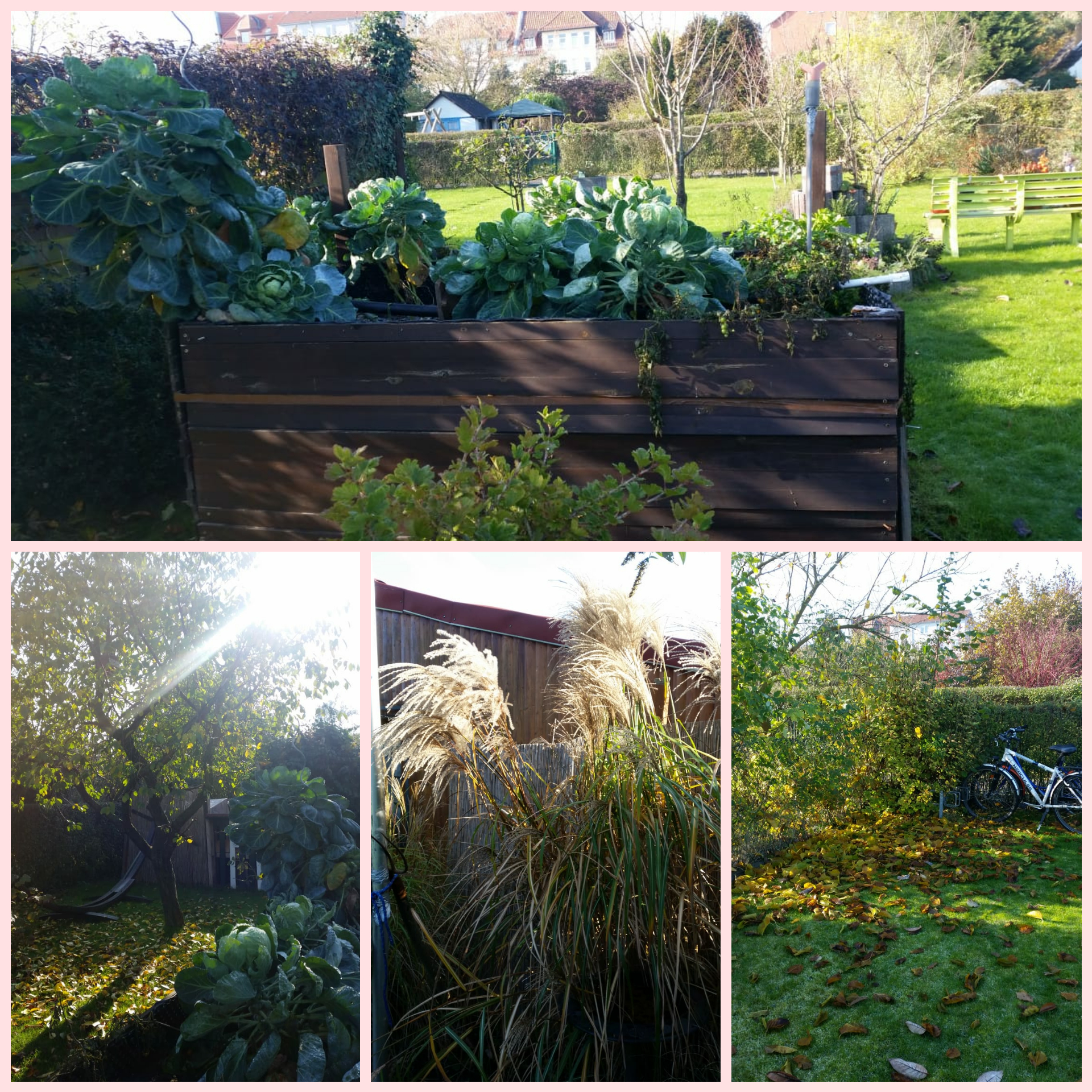 Der Garten im Wandel der Jahreszeiten, oben Sommer und unten Herbst.