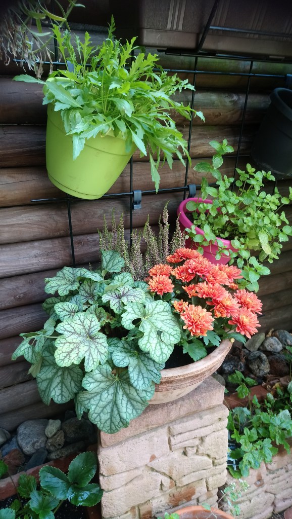 Jetzt kommen die knalligen Farben zum Einsatz! Da darf der Blattstar Heuchera natürlich nicht fehlen. Passende Begleiter sind Astern, Heide, Chrysanthemen und was halt gefällt. Eigentlich sind der Fantasie keine Grenzen gesetzt, um sich den Herbst zu verschönern.