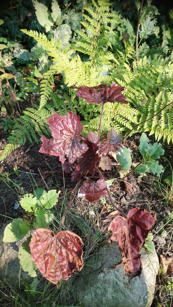 Der Farn und die Heuchera bilden ein traumhaftes Bild im Beet !