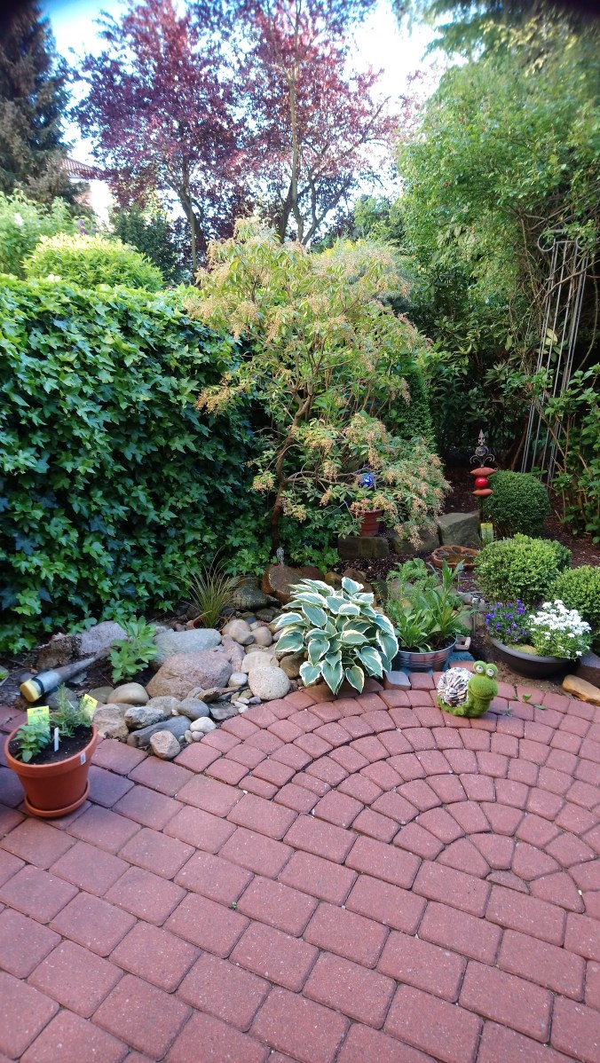 Ich liebe meine Terrasse und die Gestaltung, Bepflanzung macht mir sehr viel Spaß (siehe Terrassen-Tagebuch). Im Laufe jeden Monats entstehen neue Gesichtspunkte und den ein oder anderen Blickfang. Ein besonderer schöner Blick ist, beim Wasserspiel das Zinkgefäß mit den bienenfreundlichen Stauden. Sie wachsen gleichmäßig und die ersten Blütenknospen habe ich bereits entdeckt. In der Blüte sieht das Gefäß sicher beeindruckend aus und in Kombination mit dem Wasserspiel ein Traum.