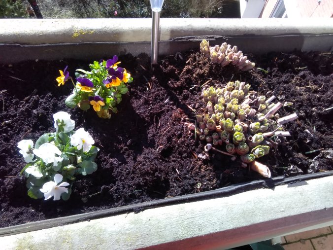 Der grüne Topf beherbergt erstmal ein Stachelschweingras. Für den pinken Topf habe ich versuchsweise Feldsalat ausgesät. Bin gespannt ,ob es funktioniert. Alle drei Töpfe beleben den Balkon wieder .