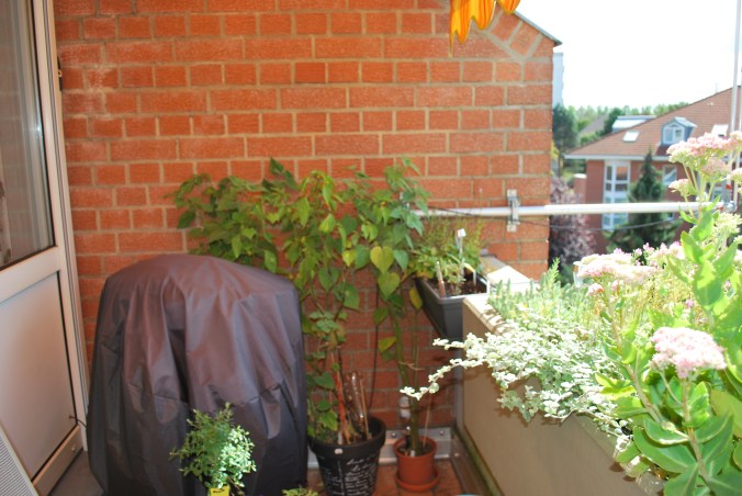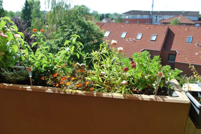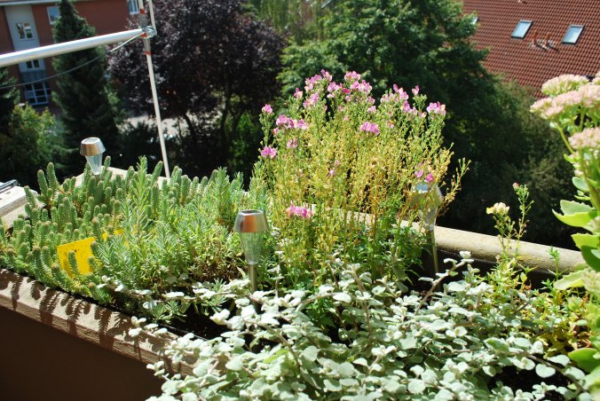 Nun kann ich erstmal wieder die Schönheit auf dem Balkon genießen. Zwar fällt, dass Gießen noch nicht ganz weg, aber es wird schon ein bisschen angenehmer.