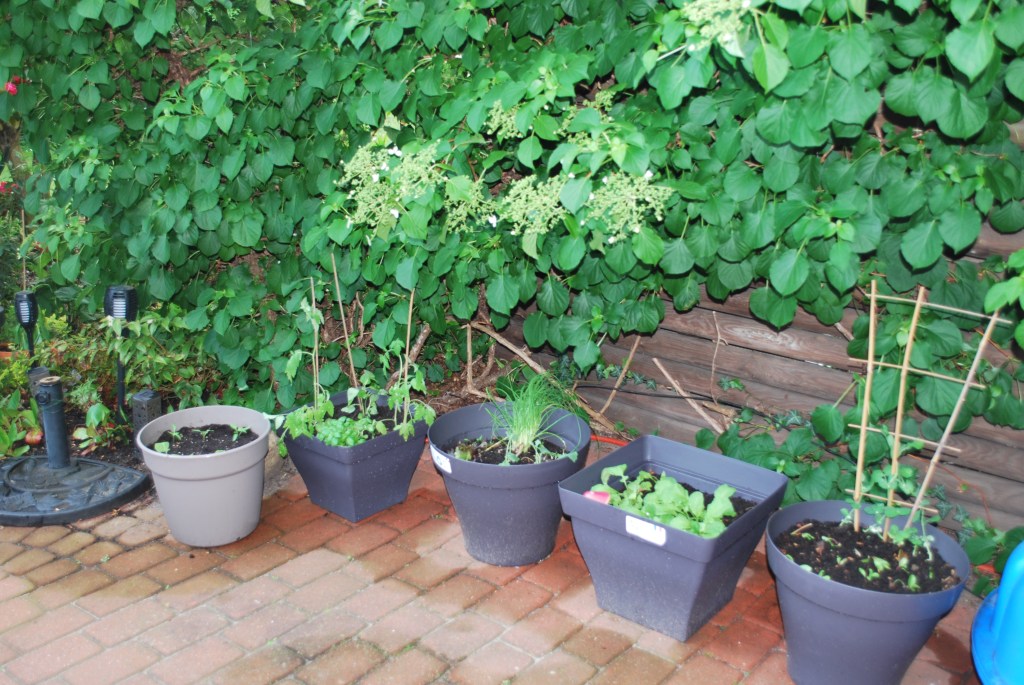 In den beiden schwarzen, eckigen Kübeln gedeihen Radieschen, Mangold, Stangenbohne, Basilikum, Zimtbasilikum und Mexikanische Honigtomate. Der runde, graue Kübel beherbergt Aubergine, rote Paprika und Erbsen. Es ist eine bunte Mischung entstanden und wenn ein kleiner Platz wieder frei wird, kommt eine neue Gemüseart dazu. Ich probiere alle möglichen Gemüsearten aus und bin auf das leckere Ergebnis gespannt. Gerne würde ich noch eine Mini-Gurke und Möhren in die Kübel pflanzen, aber das kommt noch. Gemüse auf der Terrasse zu kultivieren ist ein Genuss und man kann so toll experimentieren. Besonders mit Kindern! Probiert es einfach aus und seit erstaunt, welche leckeren Ergebnisse ihr erzielt.