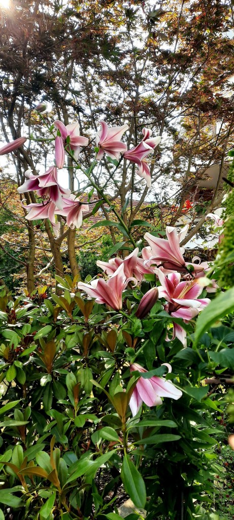 Unter der Lilie hat sich eine Herbstanemone selber ausgesät und gibt zusammen mit der Lilie ein harmonisches Bild. Solche Blumenkombinationen sind beliebt und ich bin großer Fan davon. Besonders wenn sie ungeplant sind.