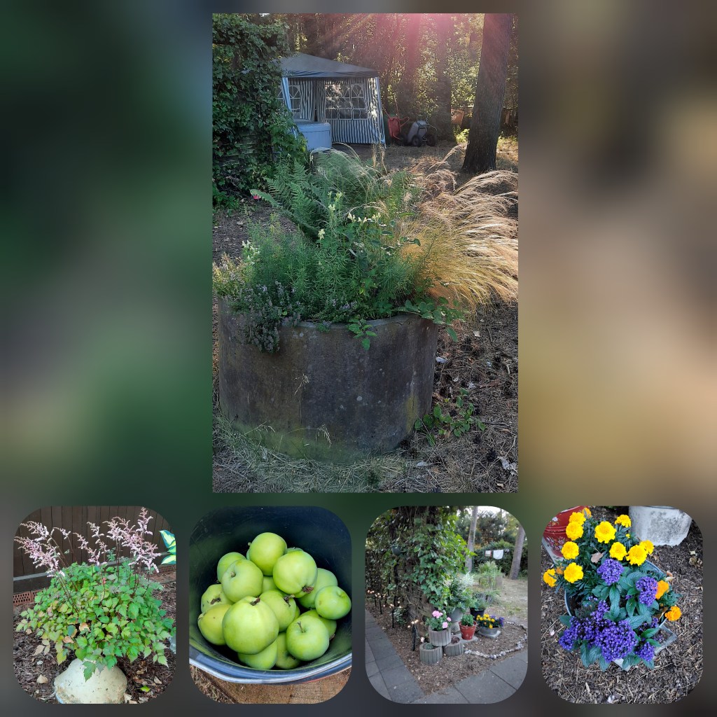 Ein ganz besonderes Highlight war die Überraschungsernte der Äpfel. Sie schmecken leicht säuerlich, leider kenne ich die Sorte nicht, aber ich glaube es sind Augustäpfel. Vielleicht sollte ich ein bisschen Obst und Gemüse im nächsten Gartenjahr dort anbauen. Ich überlege mir mal was und entwickele einen Plan!