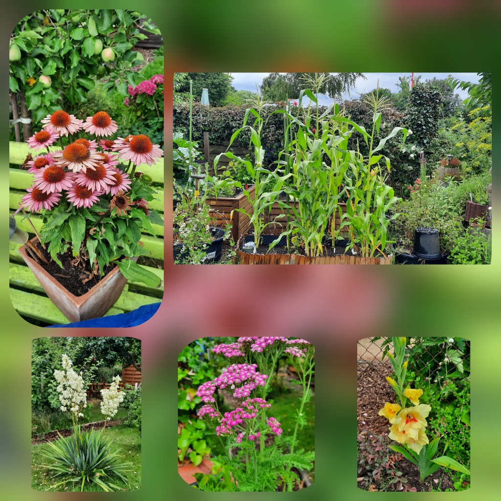 Im Schrebergarten war es im Juli besonders schön. Fast jede freie Minute hab ich meine Zeit in unserem Schrebergarten verbracht. Alles blüht und überall summt es!