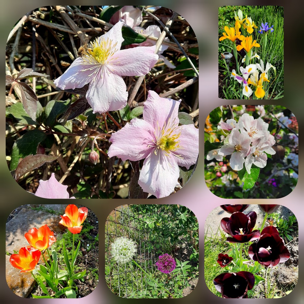 Neben den Blumenzwiebeln zeigte ihre Schönheit, die Clematis. Schon zu Lebzeiten meiner Großeltern ist sie ein fester Bestandteil am Rand der Terrasse. Sie wächst zu einem attraktiven Sichtschutz heran und das Jahr für Jahr. Es ist beeindruckend und kann fast gar nicht in Worte gefasst werden.