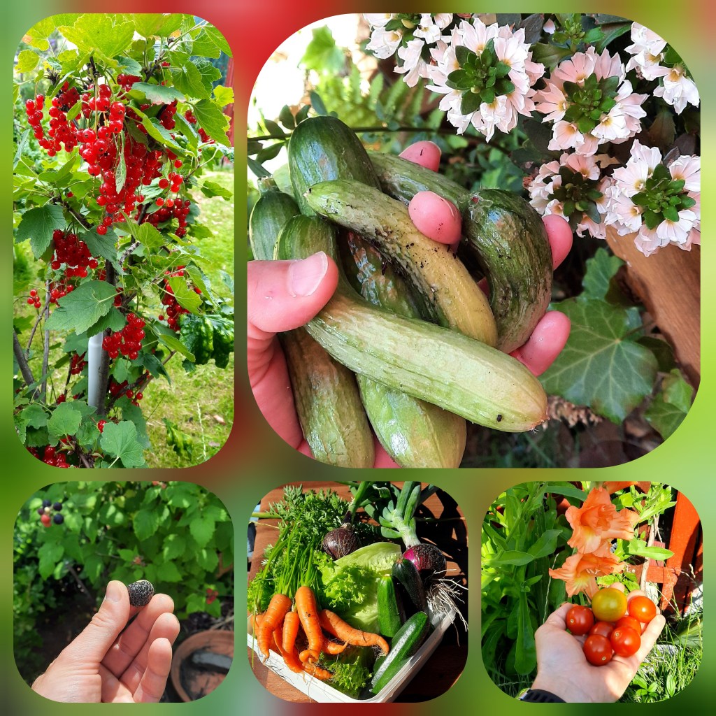 Neben der Zucchini waren Sauerkirschen, Johannisbeeren und alles was in den Hochbeeten/ Rahmenbeete wuchs. Wenn ich aus dem Garten kam, hatte ich grundsätzlich Gemüse oder Obst aus dem Garten dabei. So wurde jede Mahlzeit aufgepeppt mit der frische aus dem Garten.