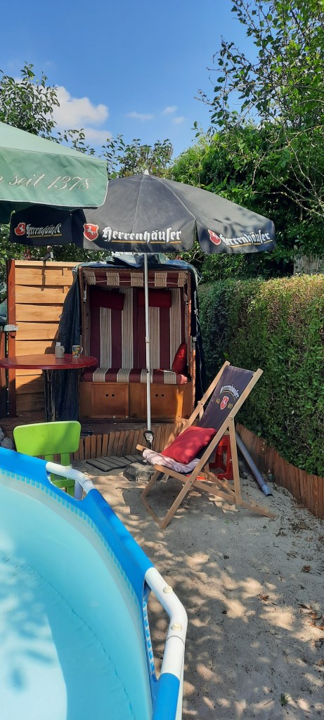 Die Entspannung im Garten wird 2023 nicht zu kurz kommen. Dafür wird die Pool-Ecke wieder hergerichtet werden. Die kleine Terrasse, wo der Strandkorb in der letzten Gartensaison einen neuen Platz bekommen hat, wird in dieser Gartensaison erweitert. So soll eine gemütliche Longecke entstehen. Ich bin total gespannt drauf. Mein Papa hat da eine Idee und auf seine Umsetzung bin ich neugierig. Ich liebe diese gemütliche Strandkorb-Ecke sehr und hab die Entspannung dort jedesmal genossen. Kleine Auszeit vom Alltag, ein Gefühl von Urlaub.