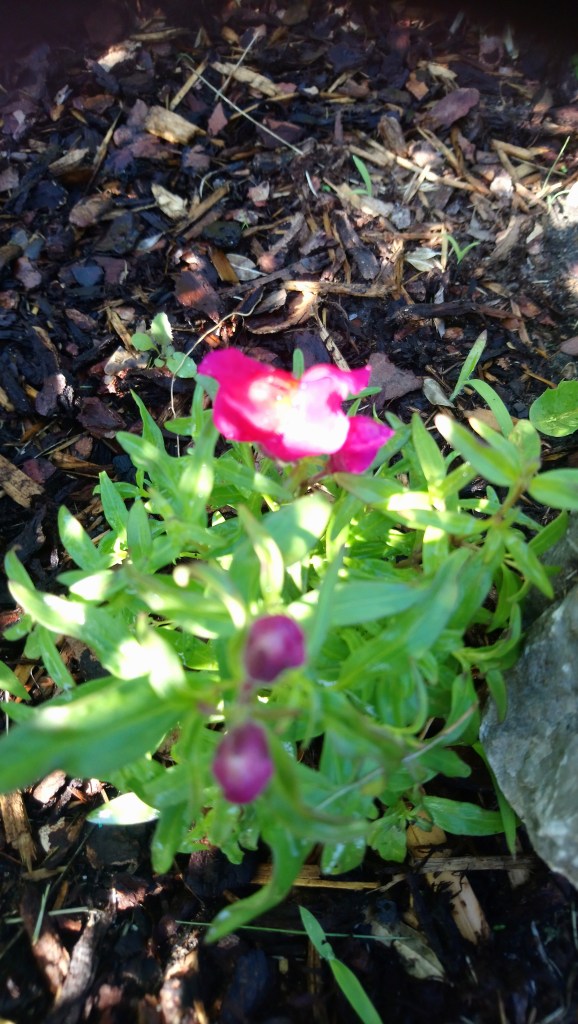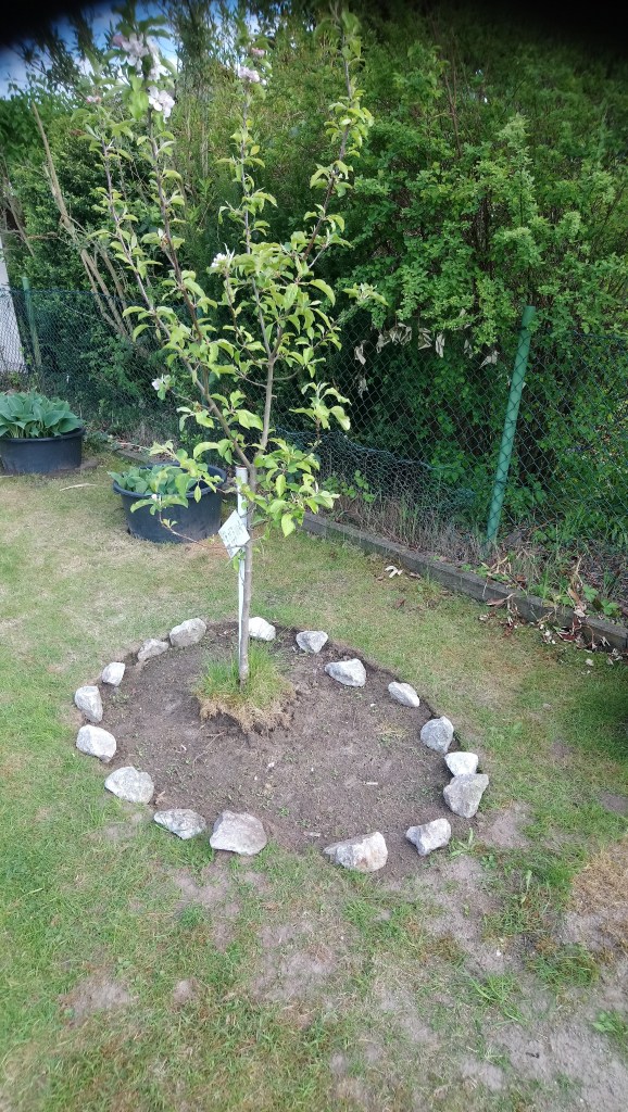 Der Rasen wurde abgestochen und der Rand mit verschiedenen, großen Steinen eingegrenzt. Bei der pflanzlichen Gestaltung haben wir drauf geachtet, dass es sich um bienenfreundliche Pflanzen handelt. Ich pflanzte Löwenmäulchen, Strohblume, Wandelröschen und Tagetes. Dahlien wurden gesetzt und essbare Blütenmischung ausgesät.