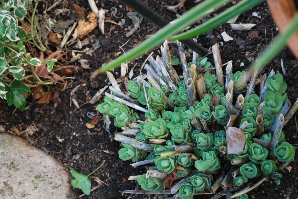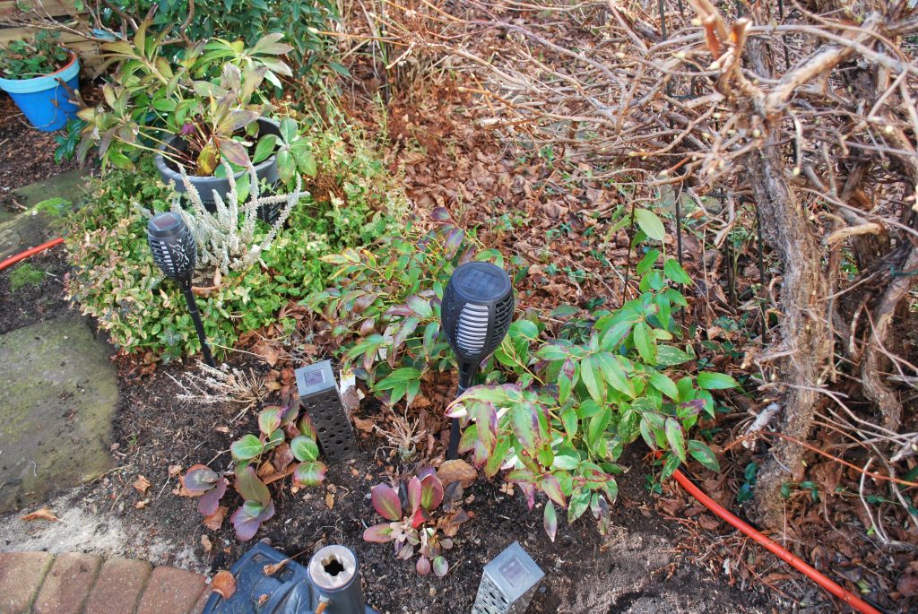 Überall liegt das ganze herabgefallene Laub herum, dass muss weg. Also wird der Besen geschwungen und das Laub wird aufgefegt und ab damit in die Biotonne. Mir kommt es so vor, dass es in diesem Jahr noch mehr Laub ist als im letzten Jahr. Auch das Laub auf den Beetabschnitten wird komplett entsorgt. Genauso wie die Tannenzweige, die ich zum Winterschutz eingesetzt habe.
