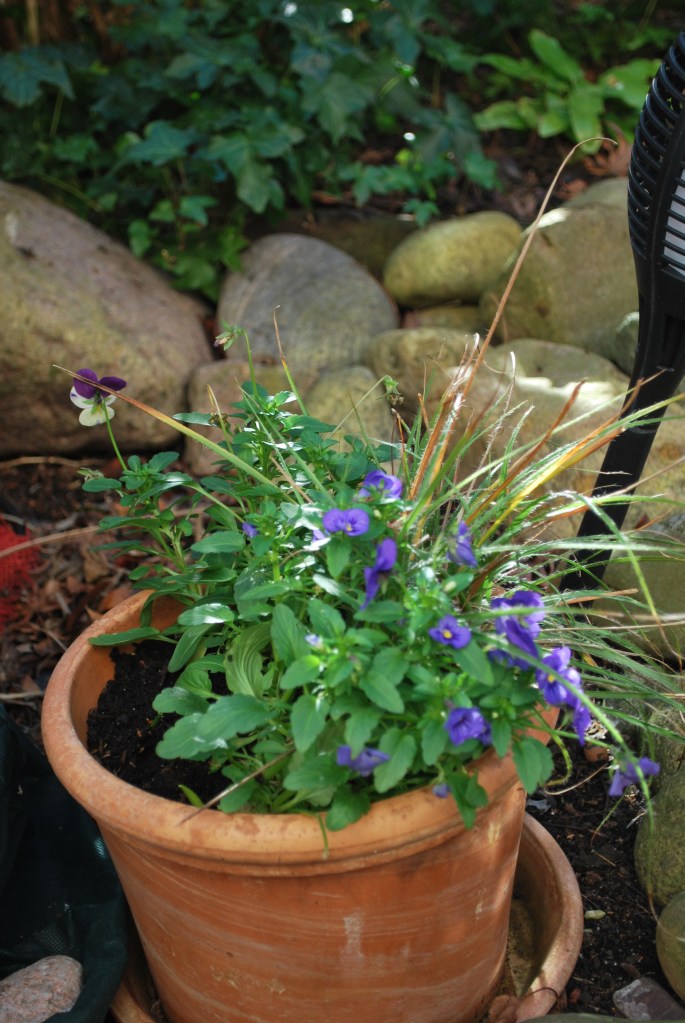 Die Kübel und die Kästen an der Seite werden natürlich wieder saisonal bepflanzt. Jetzt kommen erstmal die Frühjahrsblüher. Hornveilchen, Stiefmütterchen, Bellis und Ranunkeln bringen Farbe auf die Terrasse. Das ist Frühling und es ist bunt, so wie ich es mag. Die Auswahl der Sommerblumen beginnt erst, wenn der Mai da ist. Eine Sommerblume steht wie jedes Jahr fest und das ist die Geranie. Sie darf nicht fehlen, denn sie ist für mich ein Andenken an meine Oma!