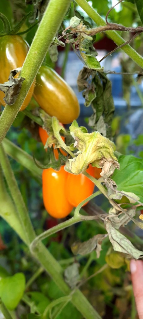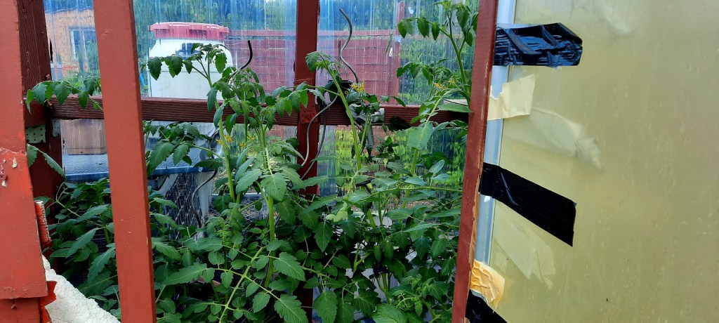 Im mittlere, kleinere Hochbeet hat mein Papa unsere übrig gebliebenen Tomaten gepflanzt. Sie wachsen und wachsen. Ich finde durch die Tomaten sieht der gesamte Hochbeetgarten wie ein kleiner Gemüse-Dschungel aus. Jetzt heißt es warten, dass die Tomaten rot und geerntet werden können. Ich möchte in diesem Gartenjahr von einigen Tomaten eine Soße auf Vorrat kochen. Tomaten gehören einfach in unseren Hochbeetgarten.