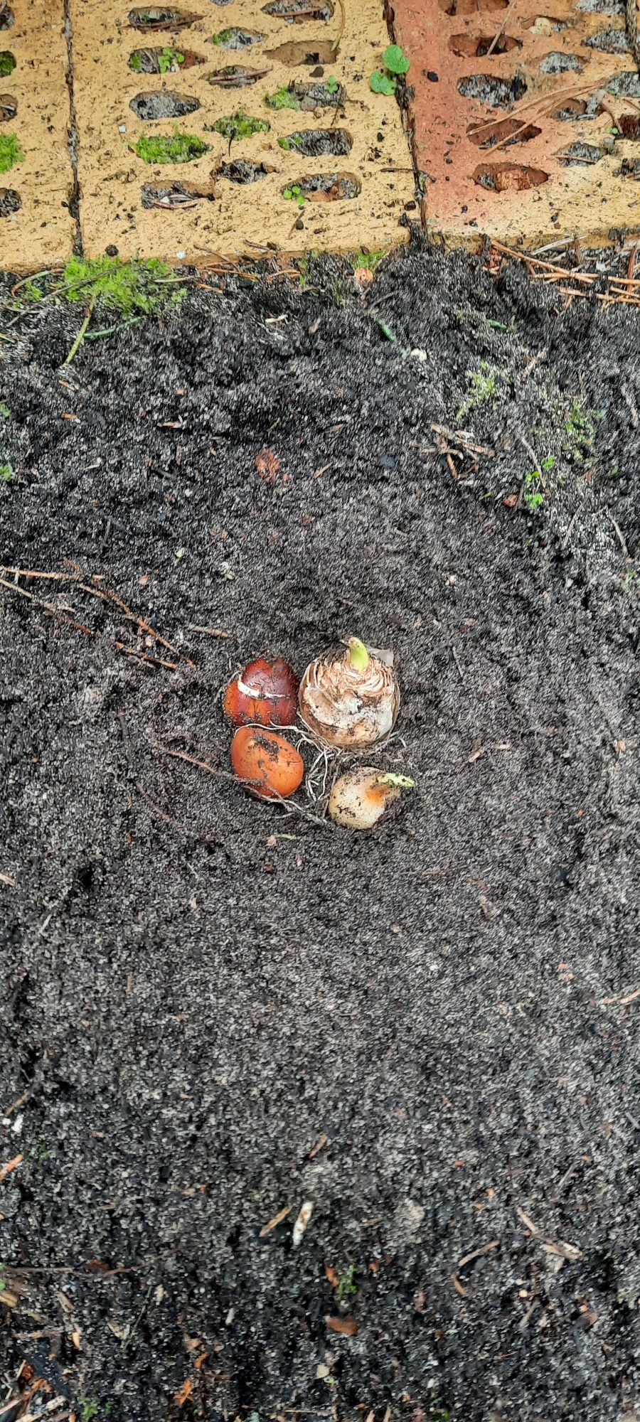 Das Pflanzloch sollte ca. 3 Mal so tief sein, wie hoch die Blumenzwiebel ist. Die Große der Blumenzwiebeln variiert je nach Sorte, dadurch kann das Pflanzenloch unterschiedlich ausfallen. Ich probiere immer aus, ob das Pflanzloch schon reicht, in dem ich die Blumenzwiebeln zwischendrin schon reinsetze. So kann ich ungefähr abschätzen, ob das Pflanzloch die richtige Größe hat.